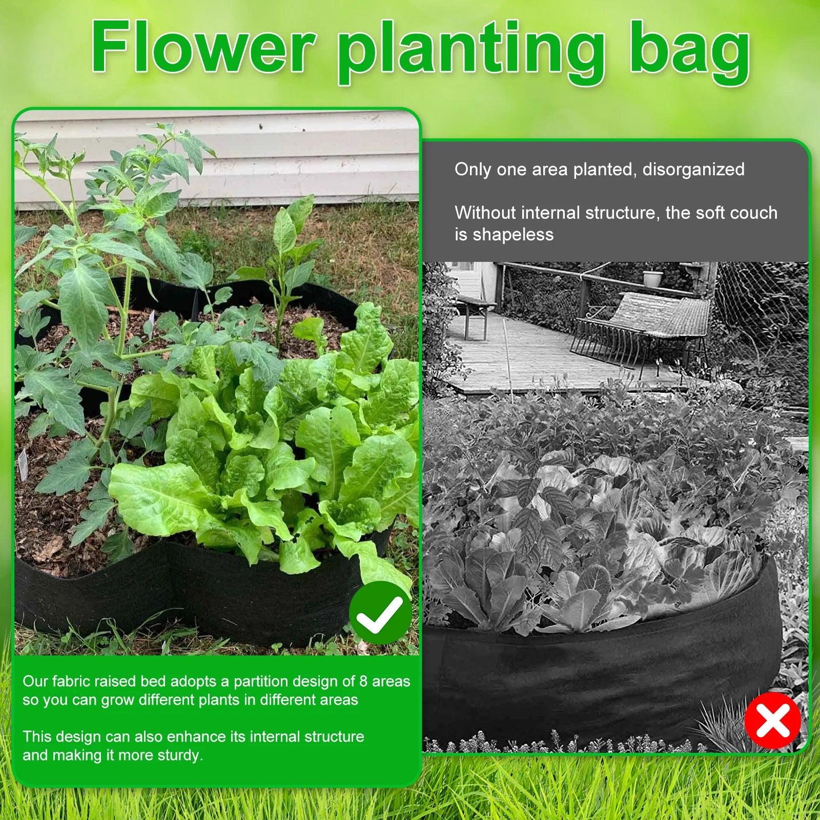 4/8 Grids Garden Raised Planting Bed Fabric Raised Garden Bed Square